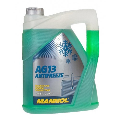 Гибридный Antifreeze AG13 -40 зеленый 5л (5.4кг) (HOAT – Hybrid Organic Acid Technology) высокотехнологичный готовый раствор (не требующий разбавления и защищающий систему охлаждения автомобиля при температуре до -40 °С) с превосходными эксплуатационными характеристиками, предназначенный для круглогодичного использования в любых современных системах охлаждения, для которых рекомендуется применение антифризов на моно этиленгликолевой основе.