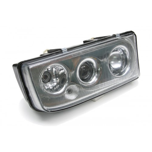 Специализированная правая головная фара для современных автобусов MERCEDES O345 CONNECTO с 2006 года. Ручной механический корректор позволяет точно регулировать наклон светового пучка в зависимости от загрузки автобуса. Лампы H4/H3 обеспечивают оптимальное освещение дороги.