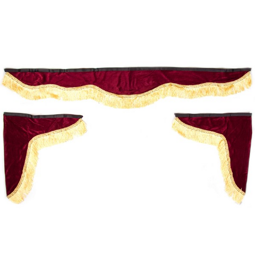 Ламбрекен лобового стекла со шторками SKYWAY 180см/60*60 см бордовый купить по доступной цене в интернет магазине аксессуаров и авто товаров для грузовых автомобилей fortrucks.by (фортракс бай).