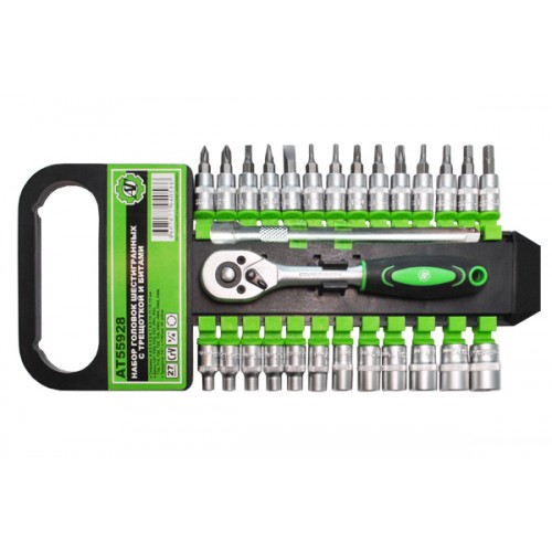 Набор головок шестигранных 1/4" с трещоткой, битами и удлинителем (28 предметов)