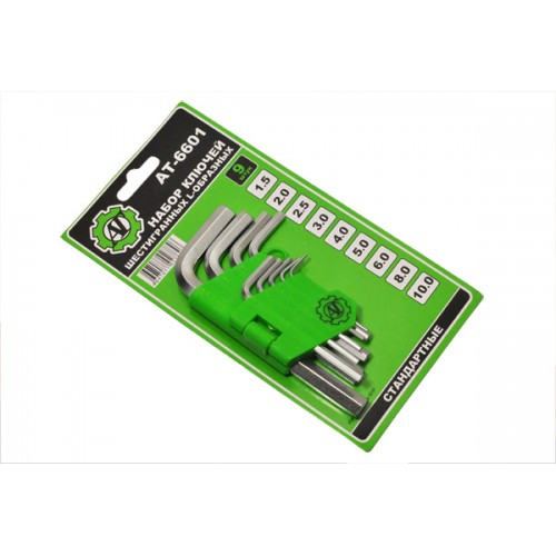 Набор шестигранных ключей "АТ" 9 пр. (1.5, 2.0, 2.5, 3.0, 4.0, 5.0, 6.0, 8.0, 10.0 мм)