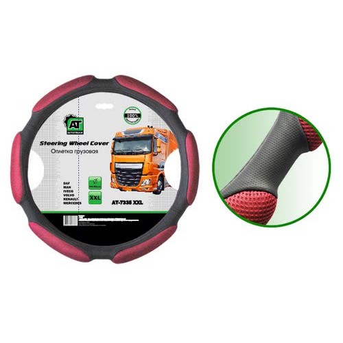 Оплетка на руль грузовая 44-46см красный спонж (DAF, MAN, MB, VOLVO, IVECO, RENAULT)