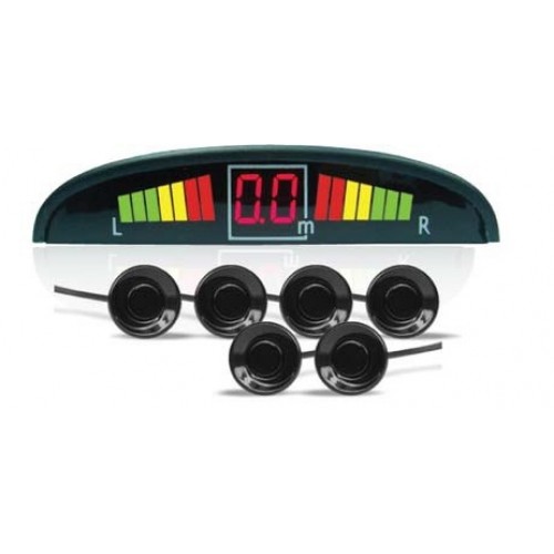 Парктроник PS-126U имеет 6 датчиков черного цвета, индикатор и блок управления.