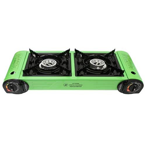 Портативная газовая плита двухконфорочная (с переходником 2шт, в сумке)
