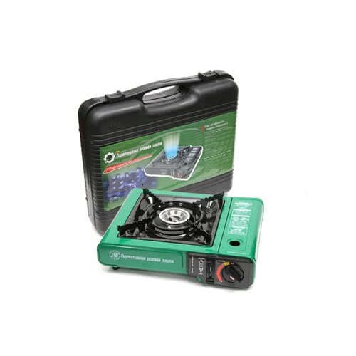 - Портативная однокомфорочная газовая плита с пьезоподжигом в удобном для транспортировки пластиковом кейсе, идеальна в походе, на даче, рыбалке и охоте.