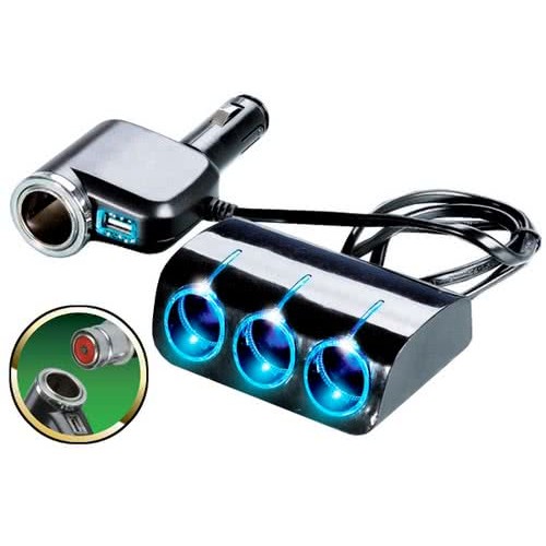Разветвитель прикуривателя 12/24V на 3 гнезда 120 W + 1 гнездо и 1 х USB разъем 5V-1.2 А, св.подсв.