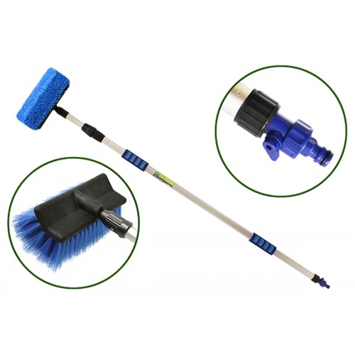 Щетка для мытья телескопическая 2-х секционная L=148-250 см усиленная, с краном подачи воды, CA-646