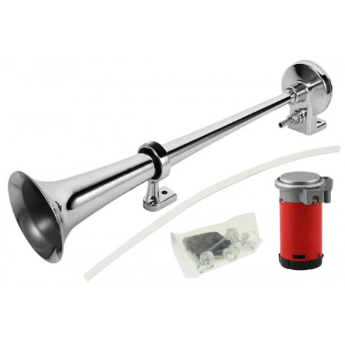 Сигнал электрический 12V одно рожковый с компрессором хром, L 450мм